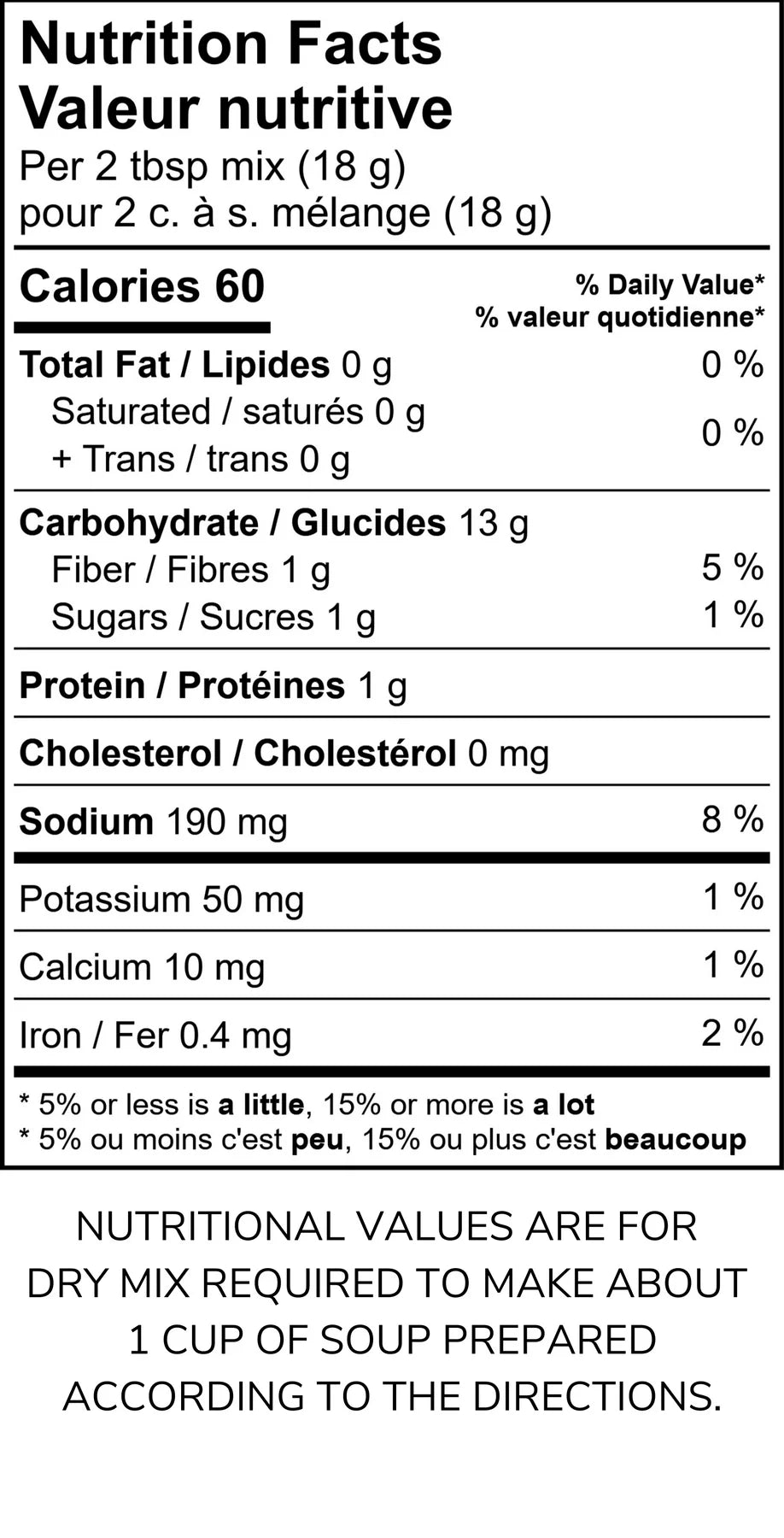 Ingredients: Pasta (durum wheat semolina), Brown rice, Barley, Wheat berry (wheat), Soup base (corn syrup solids, salt, sugar, wheat flour, dextrose, corn starch, canola oil, guar gum, spices, parsley, turmeric, natural flavour), Dried vegetables (carrot, potato, onion, green pepper, red pepper, leek), Garlic, Onion, Herbs, Spices.